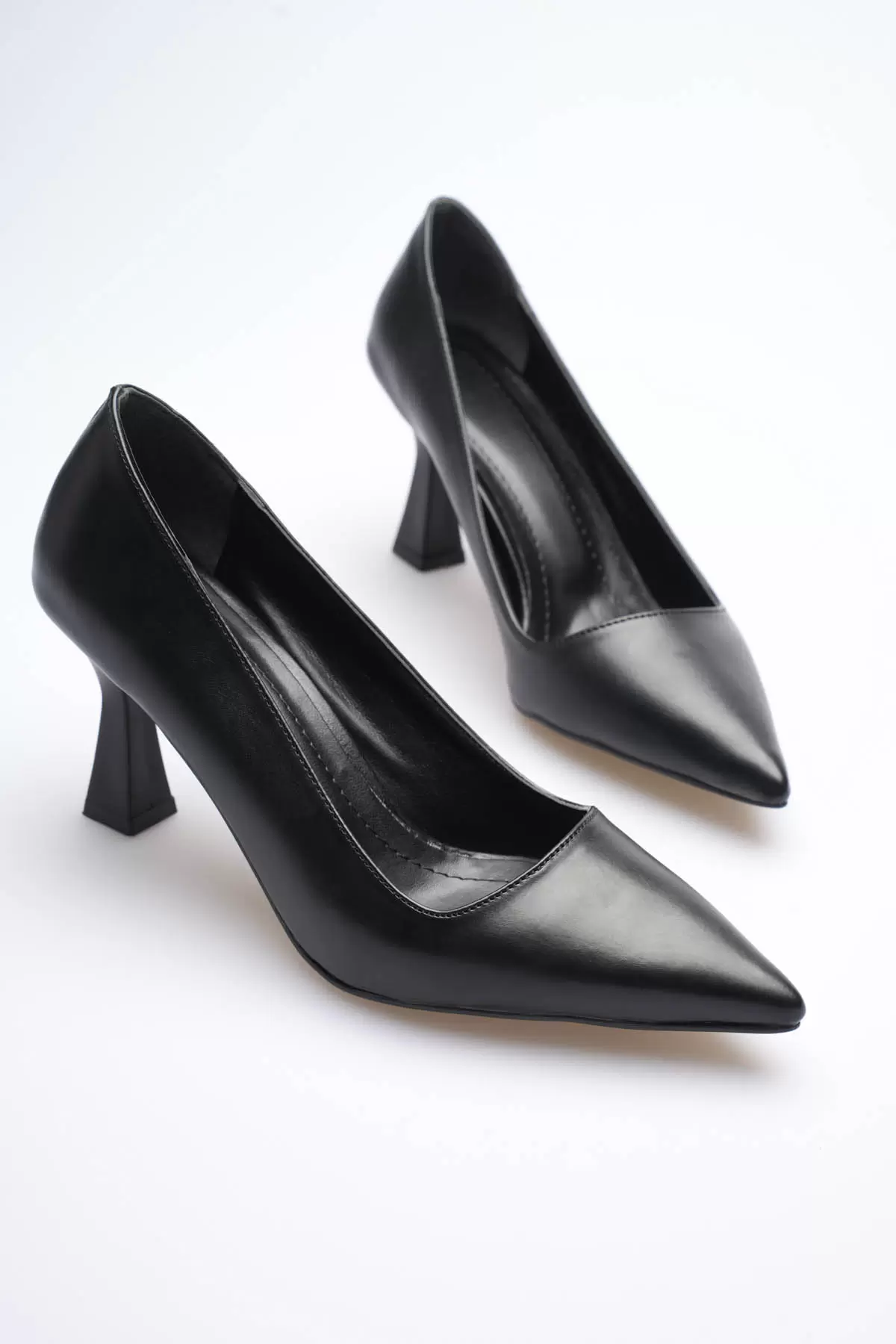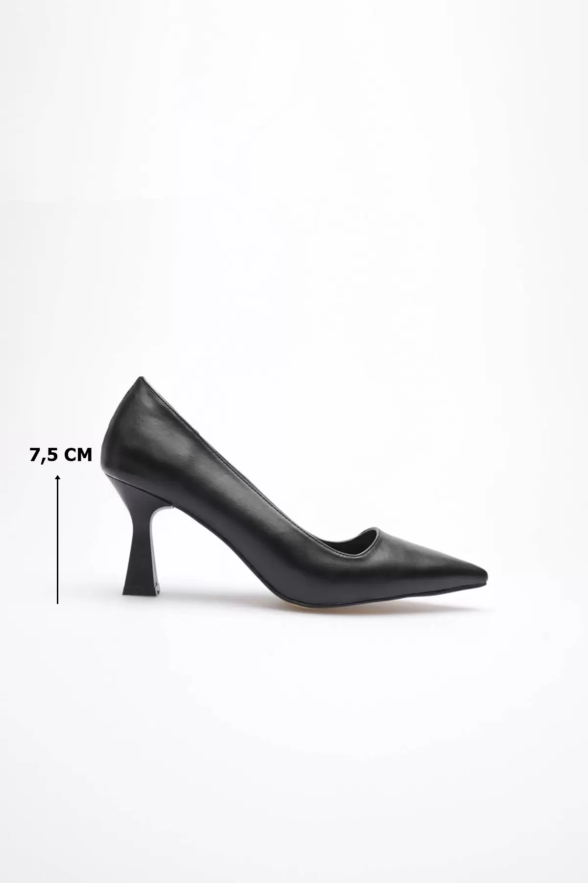 Siyah Sivri Burun Orta Topuklu Kadın Stiletto TR20MS02A