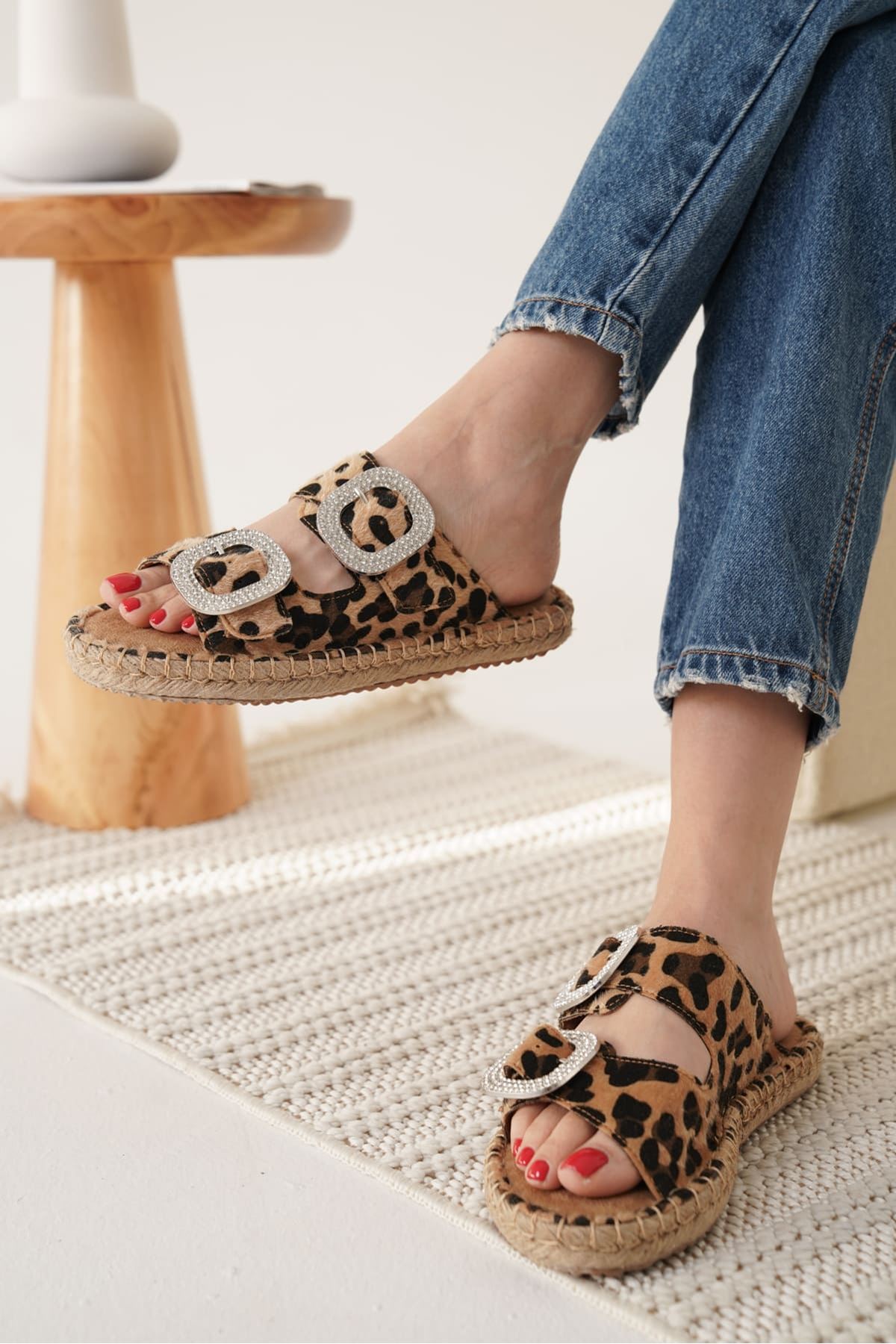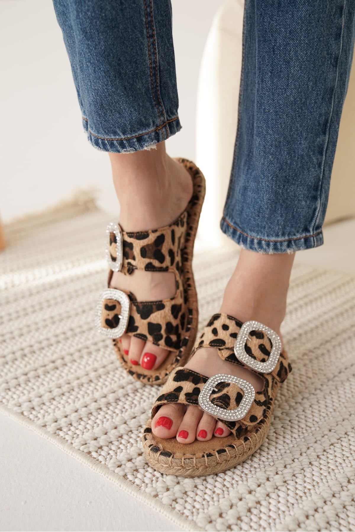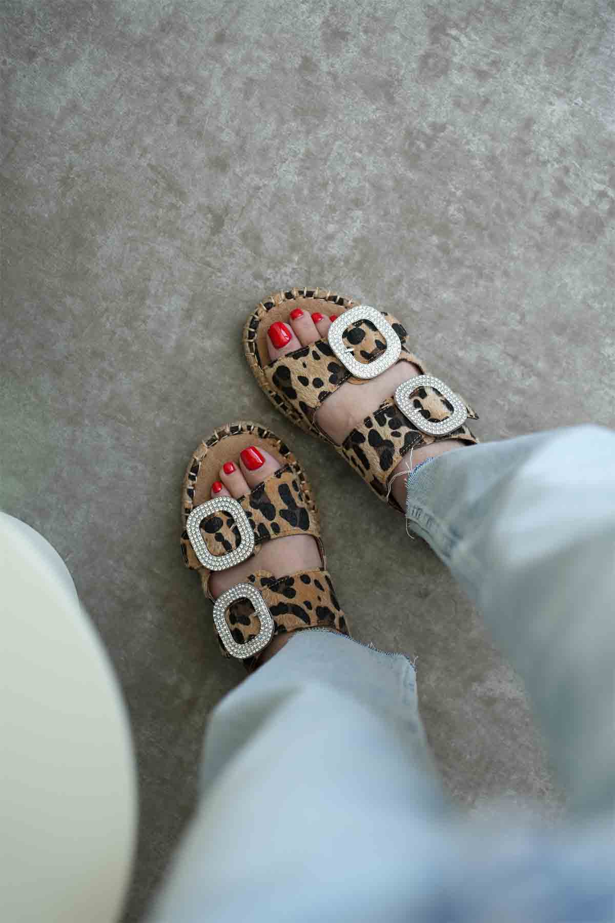 Süet Leopar Taşlı Kadın Terlik TR35MY05E