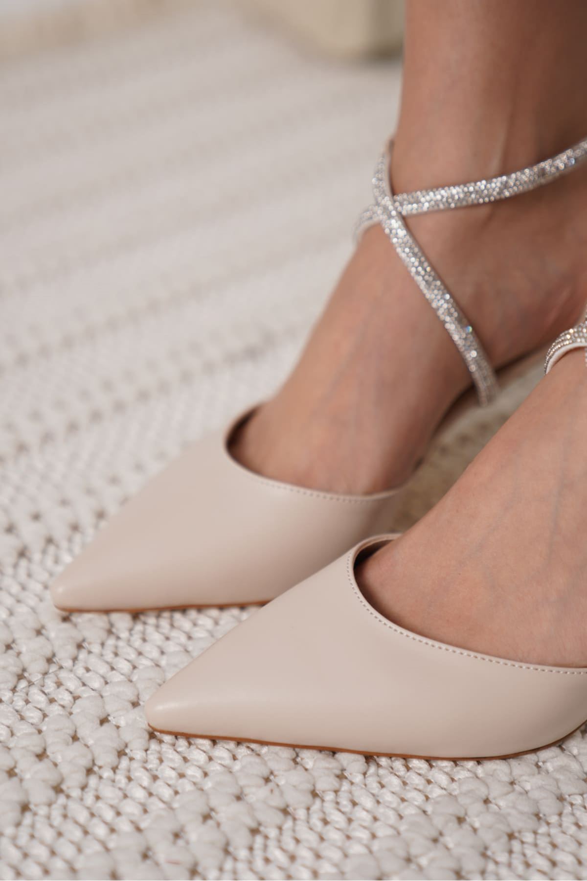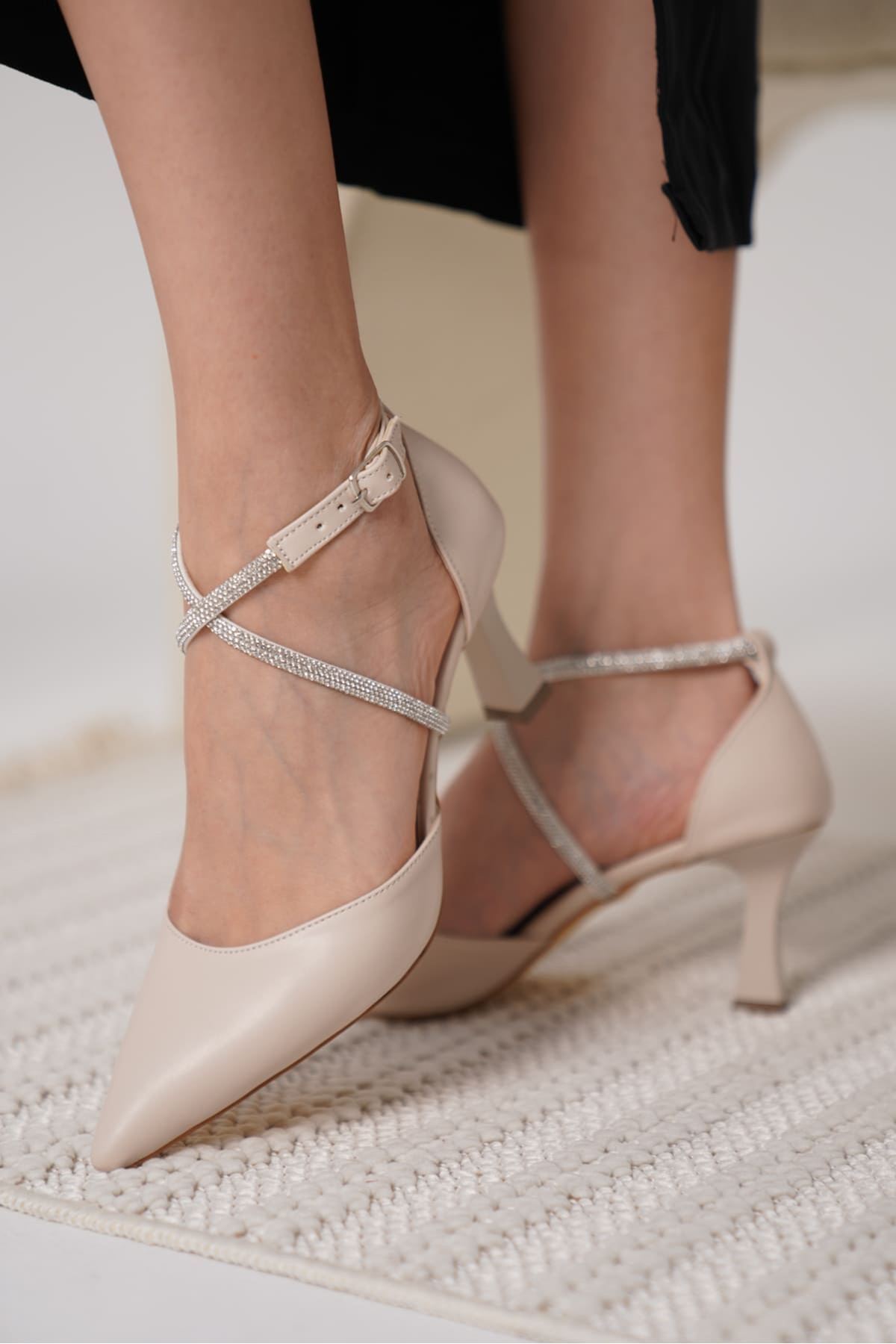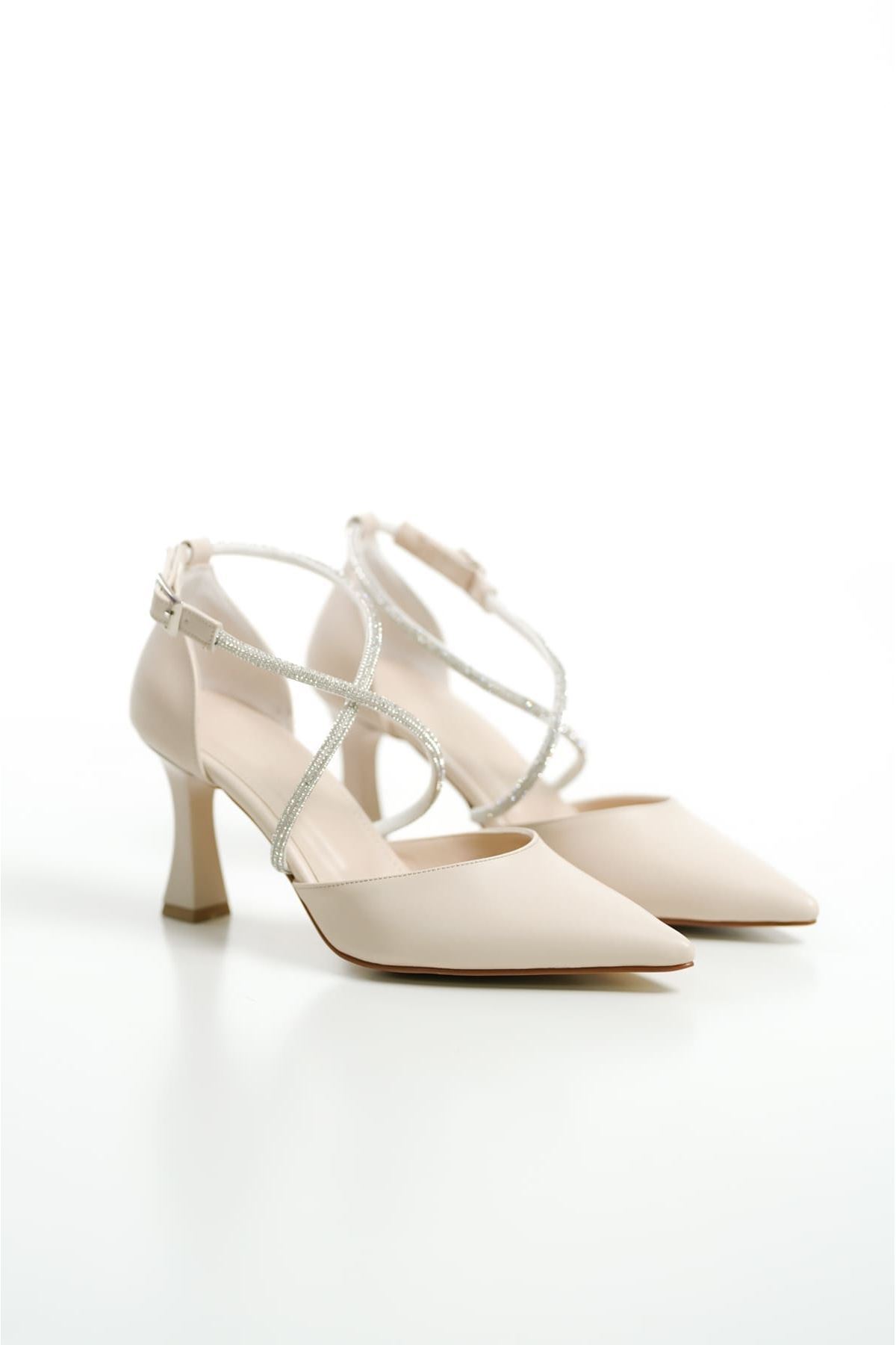 Taşlı Kadın Bej Topuklu Ayakkabı TR12MS03C