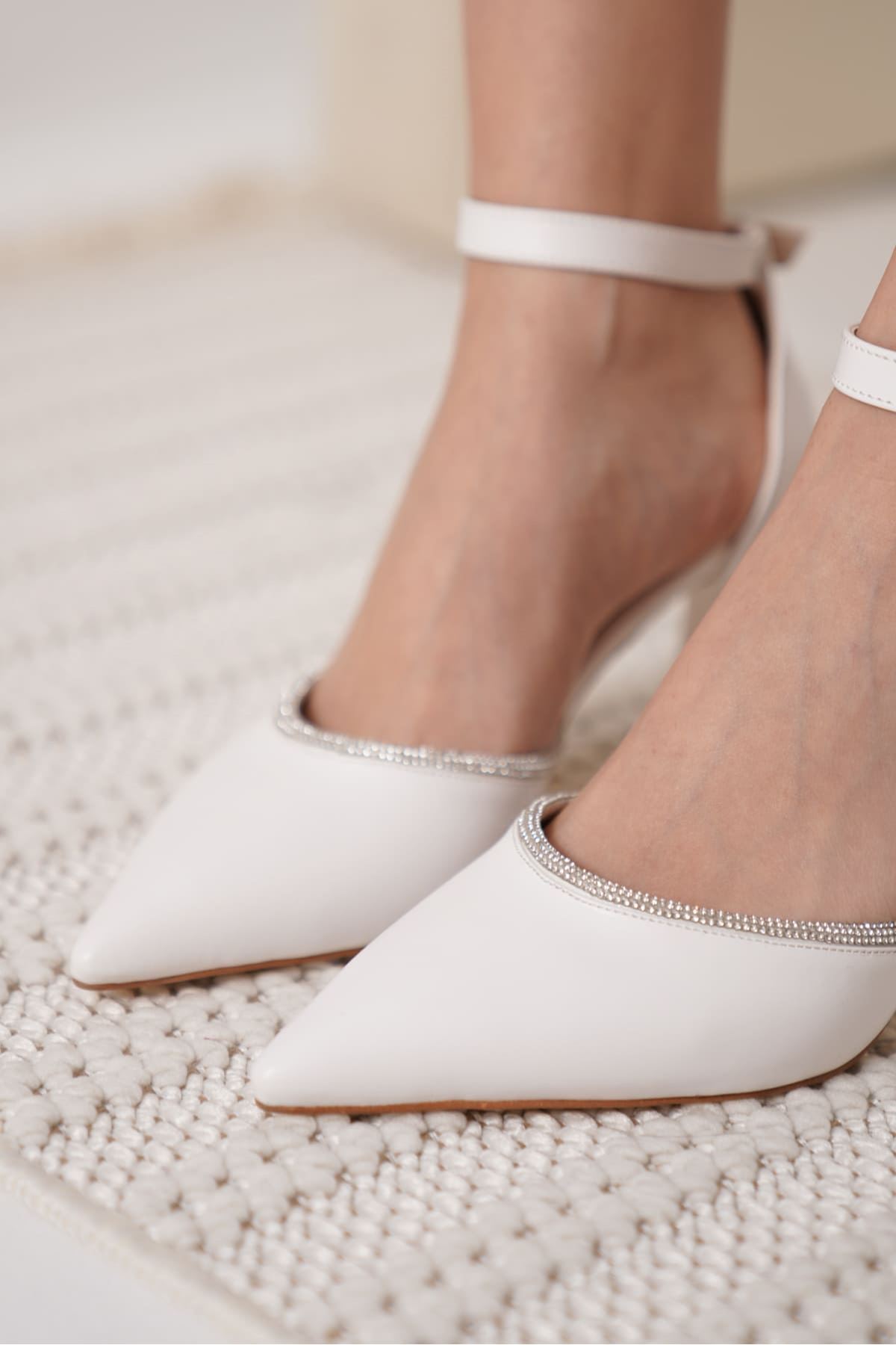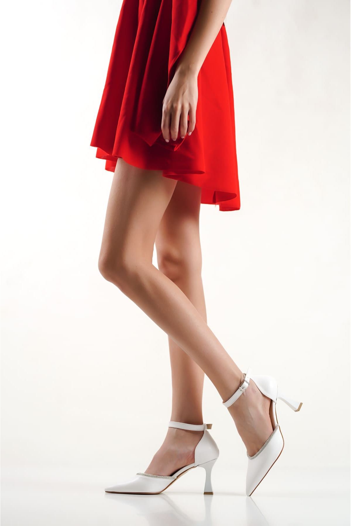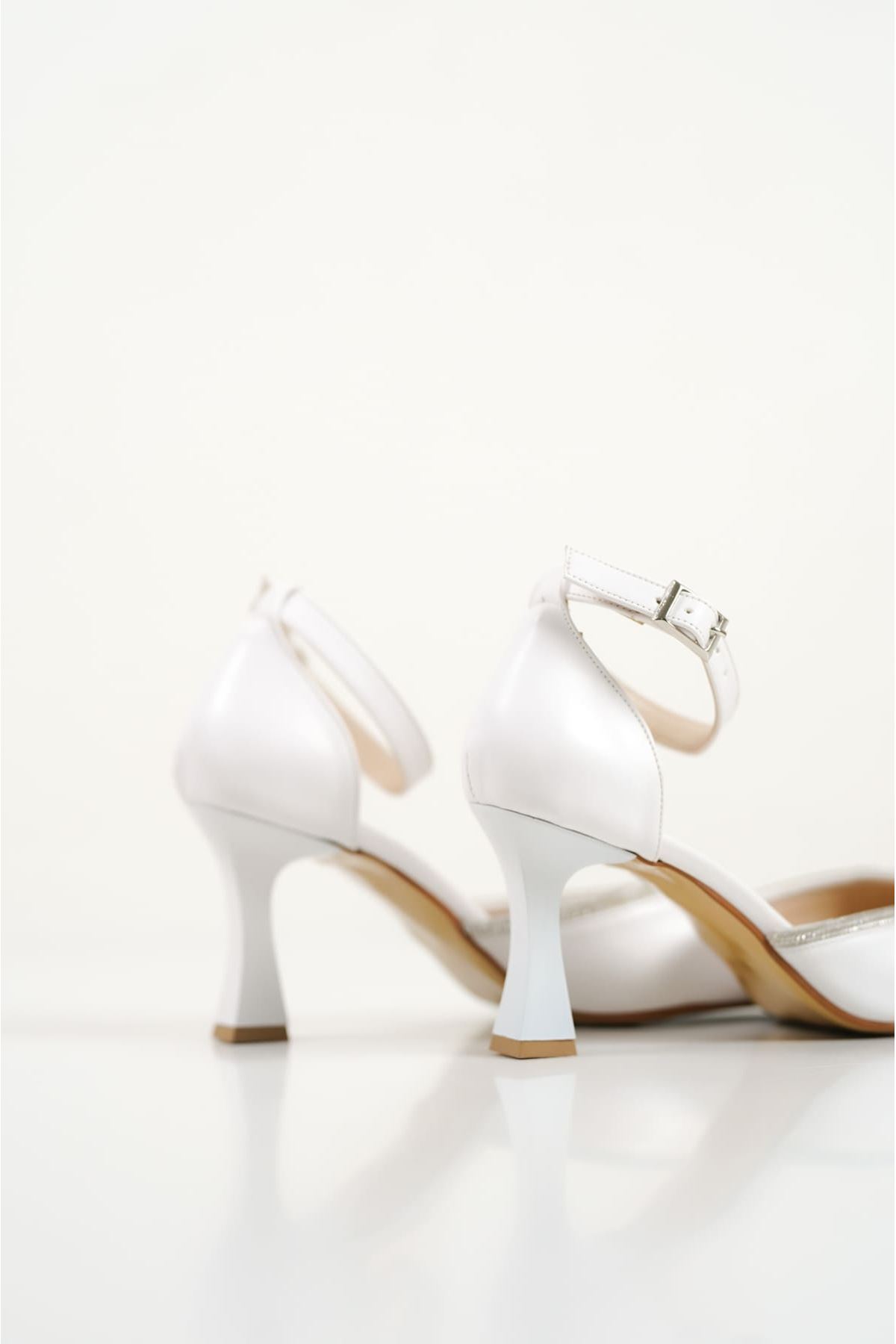 Taşlı Kadın Beyaz Topuklu Ayakkabı TR12MS02B